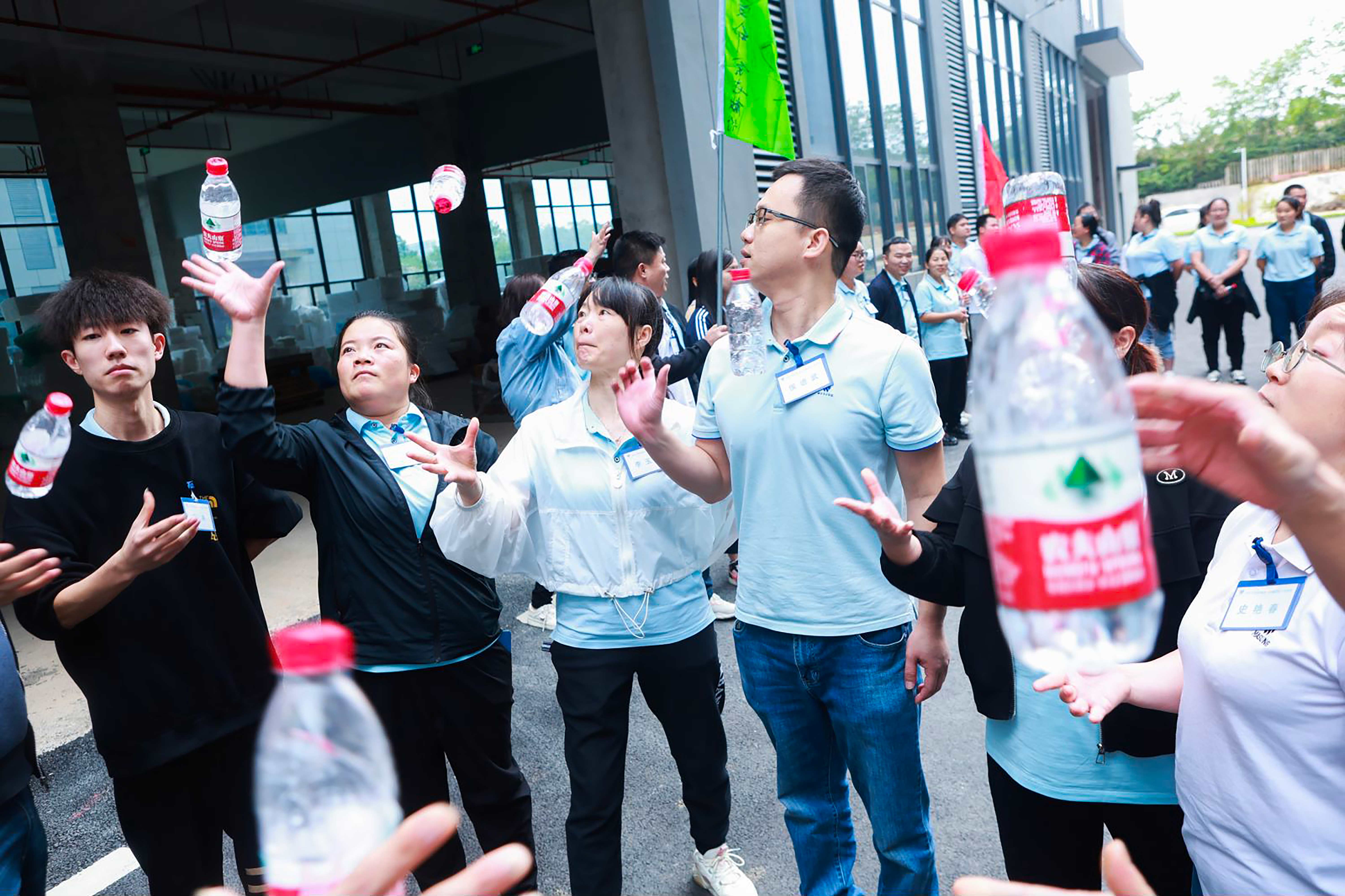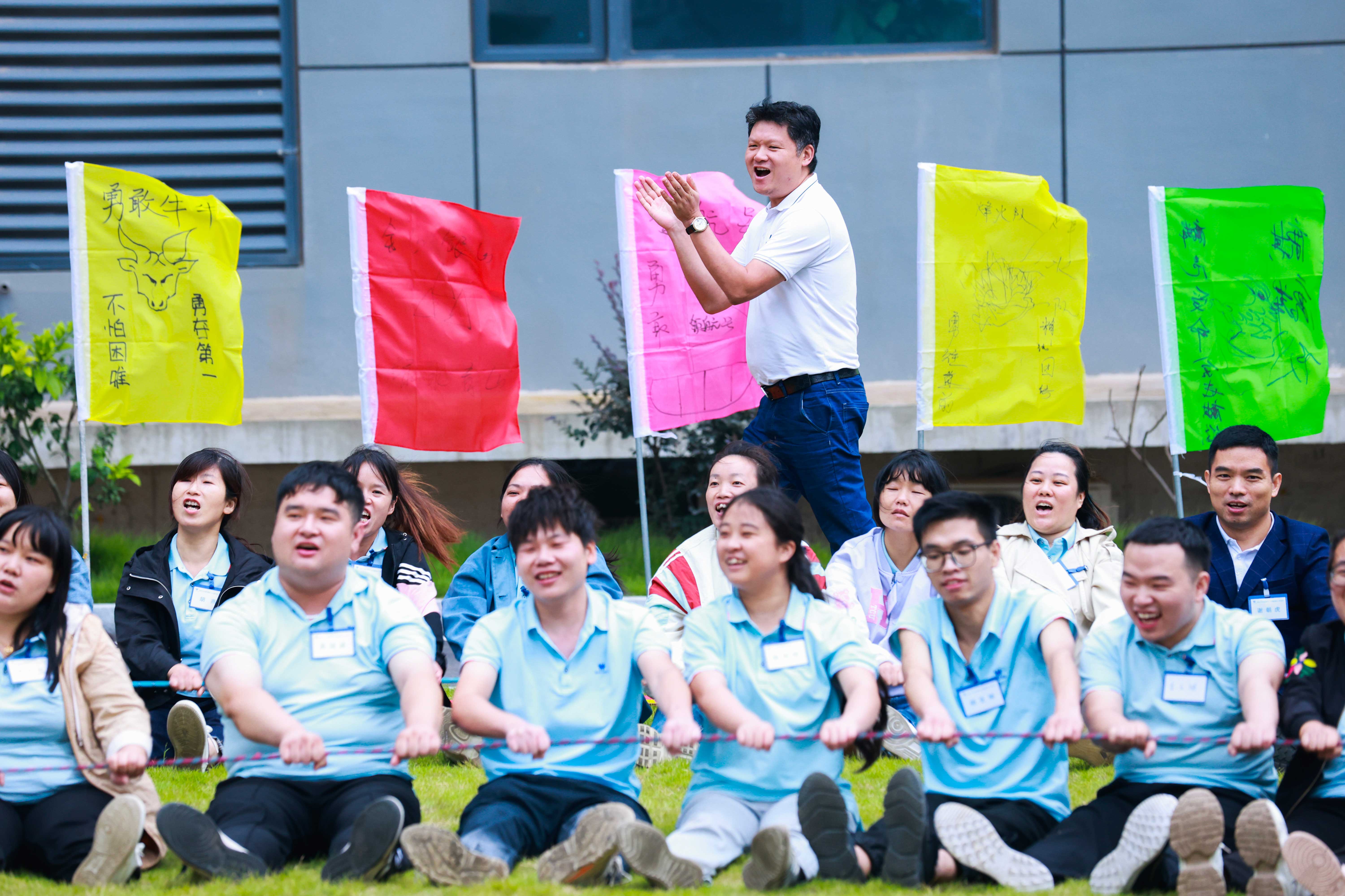 “能量動力圈”項目將活動推向高潮,大家激情澎湃,斗志昂揚,16支隊伍200余人緊緊的聚攏圍圈在一起,緊握首尾相連的繩子并用力拉緊保持圓形,按教練的要求整齊劃一地搖圈若干次,挑戰(zhàn)每個人的極限,從開始不及格的100個到成功挑戰(zhàn)666個的卓越表現(xiàn),讓我們看到了團隊的震撼與力量。我們都知道螞蟻可以負重三十幾倍的自身重量,而我每個成員就像一只只螞蟻一樣充滿了無限的力量和潛能,當我們每位員工在前方?jīng)_鋒陷陣的時候,背后都有一個強大的團隊為他分擔重量。熔煉團隊的過程,不僅提高了我們團隊的凝聚力、向心力、責任感、100%執(zhí)行力,而且還增加我們所有員工之間的信任感與相互理解包容,團隊與團隊之間的互相協(xié)作精神也得到了升華??朔诵匀觞c,決不放棄直到成功為止,為團隊共同目標的實現(xiàn)而努力奮斗!這過程更是感動的不僅是我們團隊的每一位成員,更有場外的董事長陳斌先生,也親臨現(xiàn)場為我們的所有團隊助陣吶喊鼓掌!