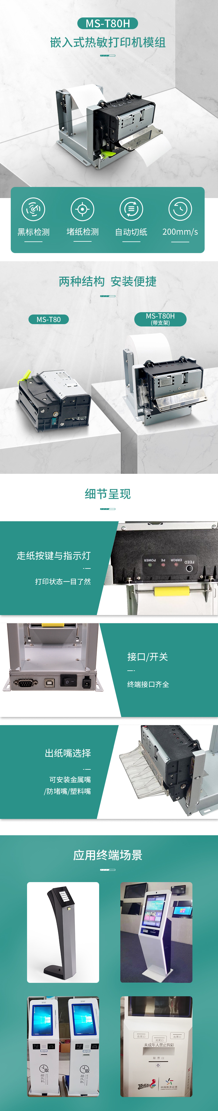 5.適用于自助查詢終端、排隊(duì)機(jī)、日志打印、自助繳費(fèi)機(jī)等領(lǐng)域的使用