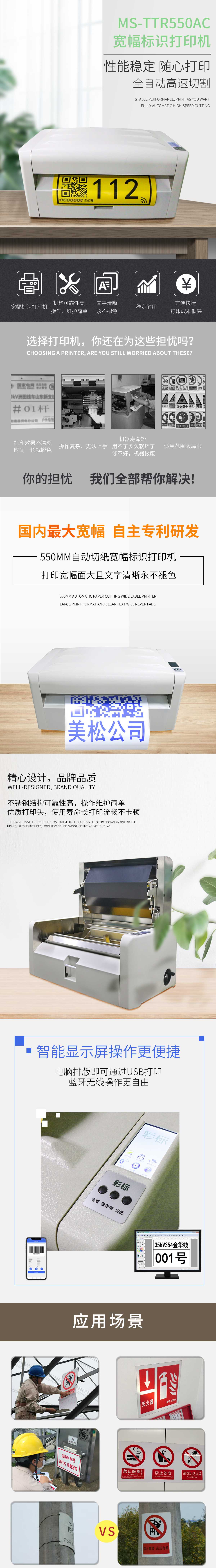 美松MS-TTR550AC熱轉(zhuǎn)印標(biāo)識(shí)標(biāo)牌打印機(jī)是針對寬橫幅印刷且自動(dòng)切割的設(shè)備.熱轉(zhuǎn)印設(shè)備能打印pvc不干膠紙,pvc標(biāo)簽紙,pvc標(biāo)牌紙,pvc電纜標(biāo)牌,復(fù)合材料封面,熱轉(zhuǎn)印機(jī)采用碳帶熱轉(zhuǎn)印方式打印,打印幅面大且文字清晰耐刮永不褪色.電腦排版完即可通過USB打印無需制版,方便快捷.機(jī)構(gòu)可靠性高,操作,維護(hù)簡單.