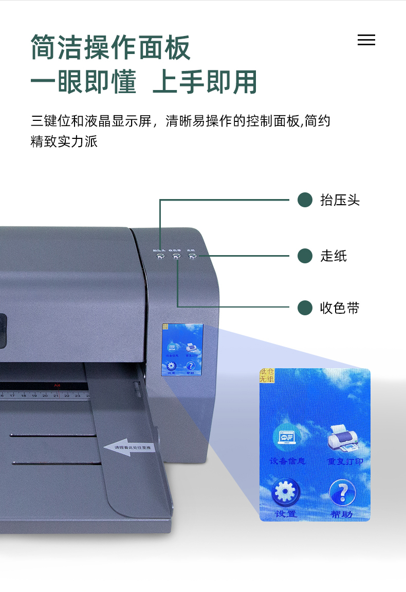 美松MS-TTR340熱轉(zhuǎn)印打印機(jī),熱轉(zhuǎn)印設(shè)備是A4/A3卷宗封面打印機(jī),針對(duì)已印刷卷皮封面進(jìn)行二次加印的設(shè)備,或單張空白版面牛皮紙,無(wú)酸紙進(jìn)行打印.采用碳帶熱轉(zhuǎn)印方式打印,文字清晰耐刮永不褪色.電腦排版完即可通過(guò)USB打印無(wú)需制版,方便快捷成本低廉,機(jī)構(gòu)可靠性高,操作,維護(hù)簡(jiǎn)單.