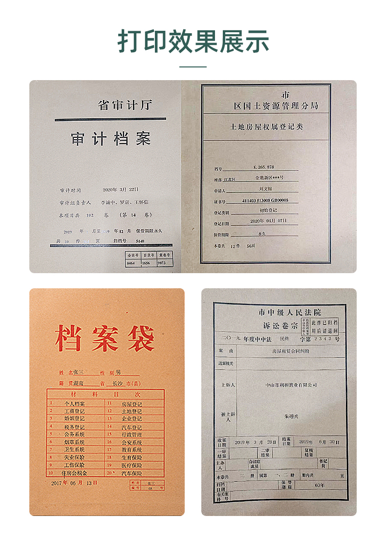 1.專(zhuān)業(yè)打印牛皮紙,不動(dòng)產(chǎn)等證件內(nèi)頁(yè),無(wú)酸紙檔案盒