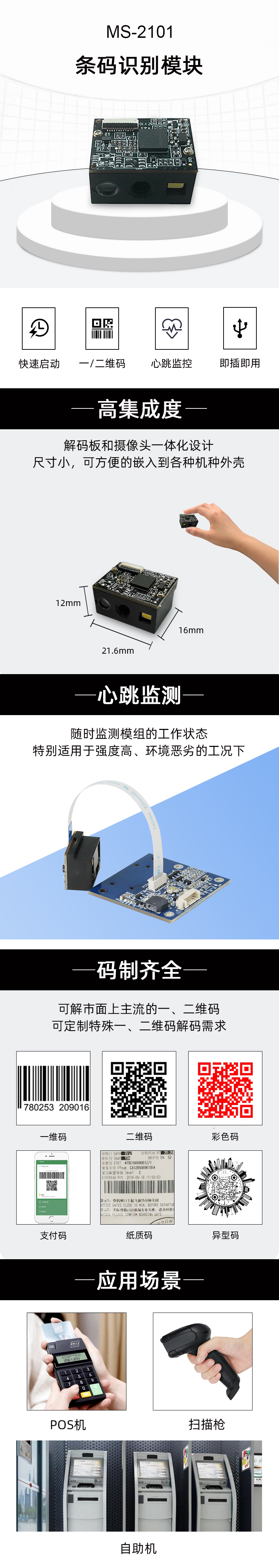 帶補(bǔ)光燈和指示燈,對(duì)紙質(zhì)條碼掃描效果好