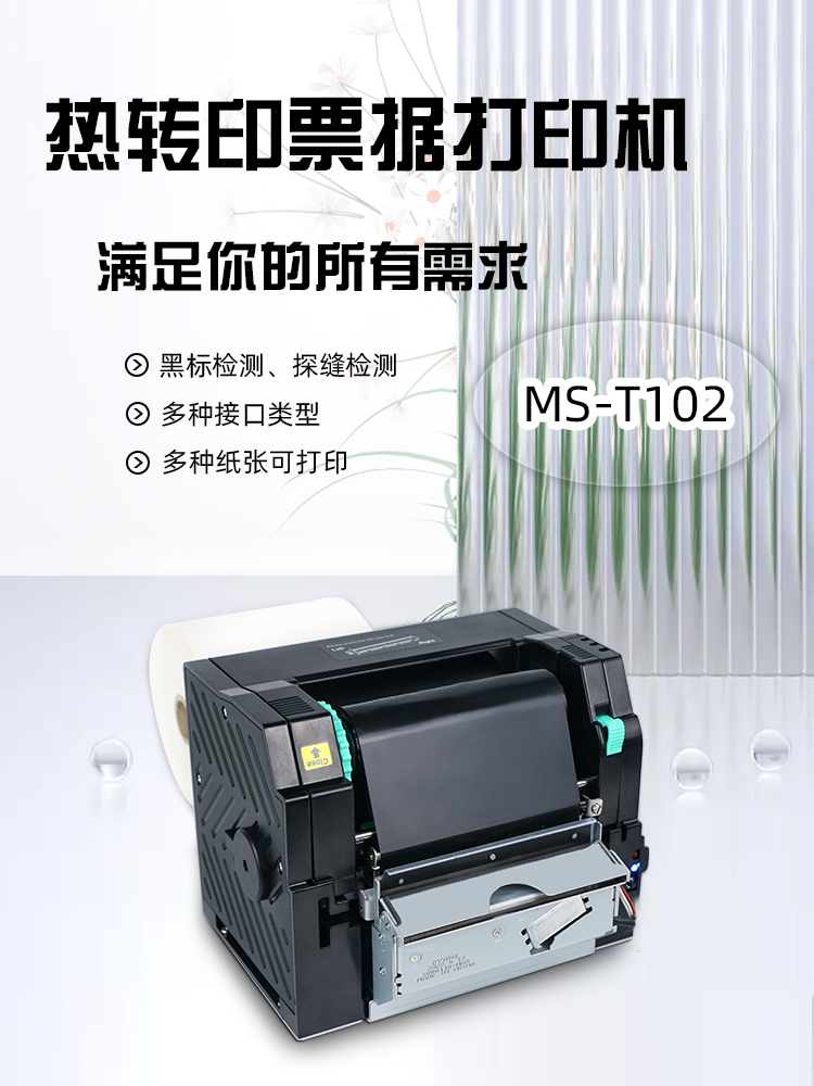 美松MASUNG自主研發(fā)4寸熱轉(zhuǎn)印標(biāo)簽打印機(jī) 1.打印清晰長久保存,定位精準(zhǔn)且易于維護(hù) 2.黑標(biāo)檢測(cè)傳感器,探縫檢測(cè)傳感器,碳帶將盡傳感器 3.打印速度快,噪音低,紙倉容量大,紙張限位可調(diào)的特點(diǎn) 4.可打印熱敏連續(xù)紙,銅版紙,吊牌,合成紙等標(biāo)簽紙 5.適用于服裝類,商場(chǎng),金融,餐飲,醫(yī)院等行業(yè)