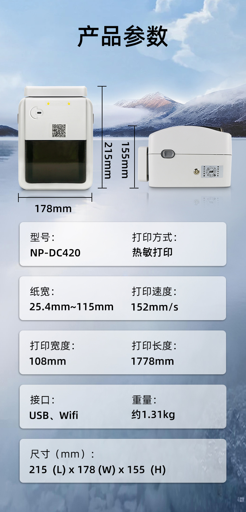 美印電子NP-DC420標簽打印機是一款帶有切刀4寸條碼打印機,打印寬度108mm.使用長效熱敏紙打印,打印內(nèi)容保存時間較長,解決普通熱敏紙易消失的痛點;成本低,無碳帶噴墨等耗材;桌面式設計,輕松打印;簡約時尚,性能穩(wěn)定,寬幅打印;大批量印制票據(jù)需求的熱敏條碼打印機,應用于物流,倉儲,珠寶,服裝,醫(yī)療,商超等行業(yè),可打印標準的發(fā)票,是一款帶切刀的票據(jù),發(fā)票打印機。
