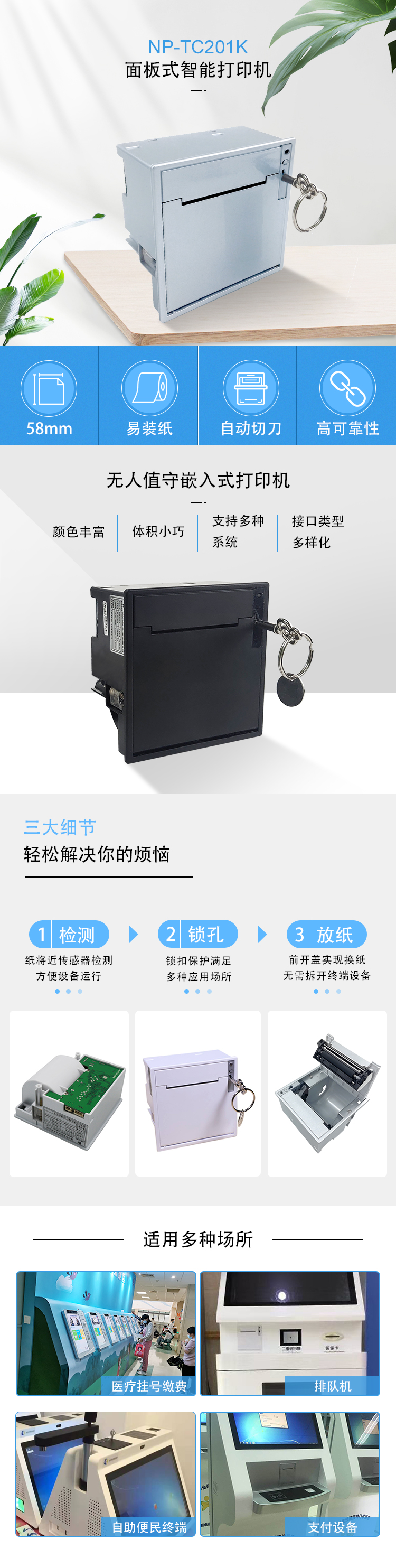 1.前開(kāi)蓋維護(hù),無(wú)需拆開(kāi)終端設(shè)備就可實(shí)現(xiàn)換紙和維護(hù) 2.開(kāi)蓋方式配置鑰匙,適配無(wú)接觸式無(wú)人化管理模塊 3.黑白銀三色選項(xiàng),任意搭配終端,滿足多種場(chǎng)景應(yīng)用