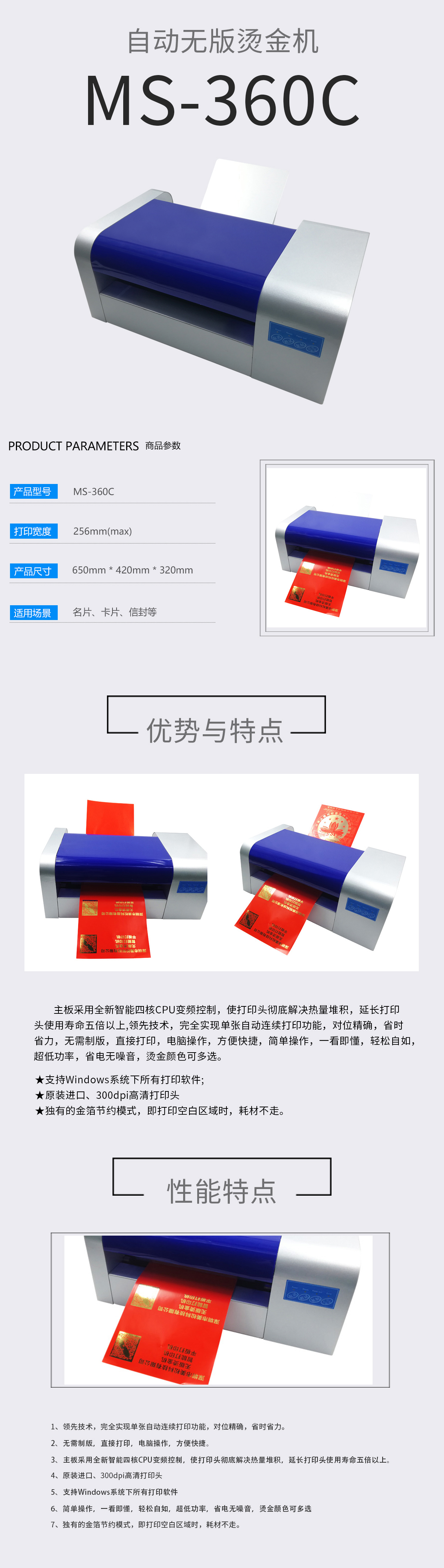 美松數(shù)碼無版燙金印花機 1.完全實現(xiàn)了單張自動進紙功能,省時又省力 2.直接usb,U盤輸出,無需制版直接打印電腦操作方便快捷 3.可連續(xù)打印卷材,即打即用,省時省力 4.全新智能四核CPU變頻控制,使打印頭徹底解決熱量堆積,延長打印頭使用壽命五倍以上