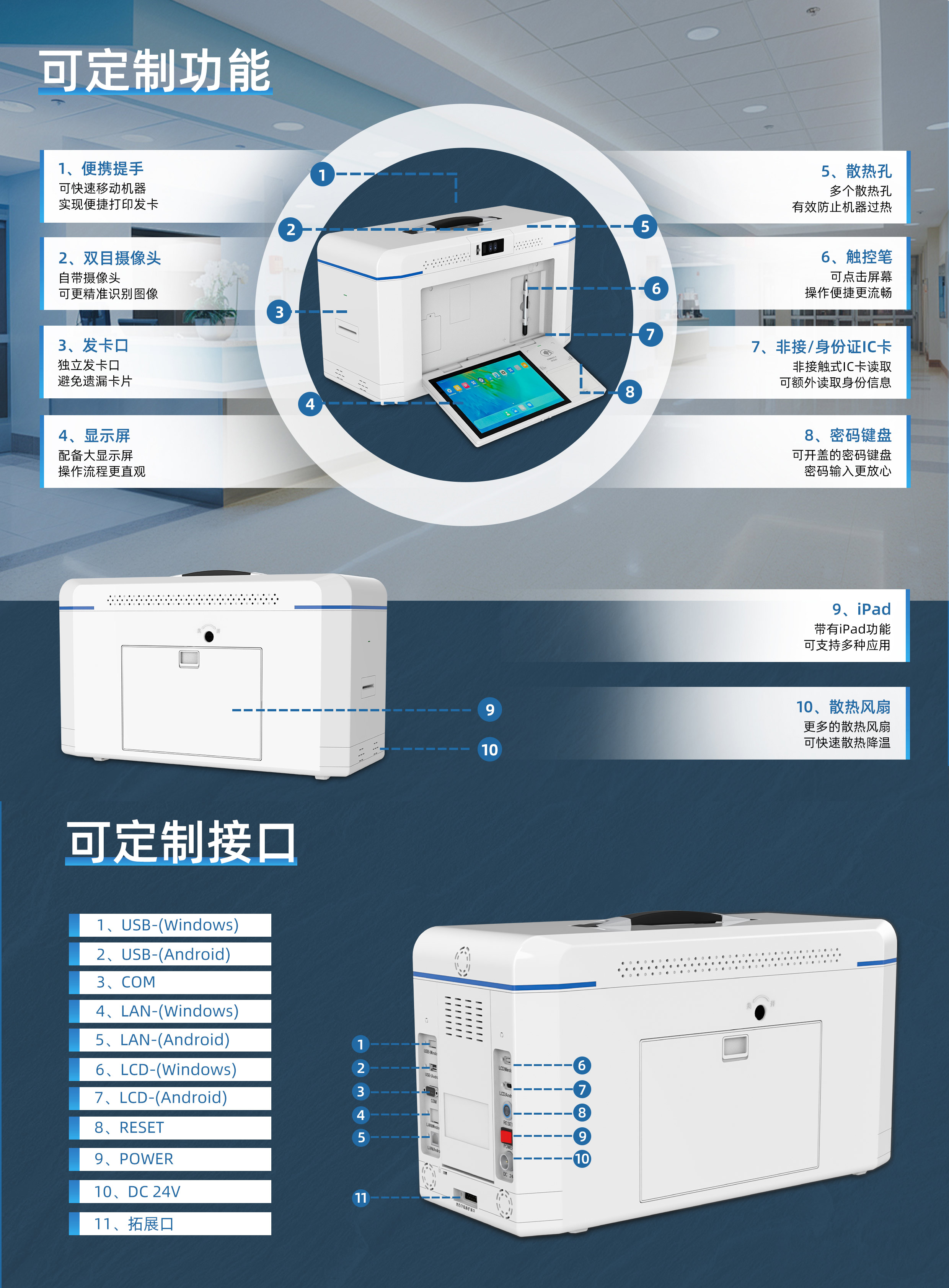 MS-ACT812是一款可移動的便攜發(fā)卡機,具有多種功能選擇,帶有雙目攝像頭和單獨的顯示屏,同時具有觸控筆可用于點擊屏幕,此外還有iPad功能可支持多種應用,可讀取非接觸IC卡和身份證和身份識別卡,帶有密碼鍵盤可用于輸入密碼