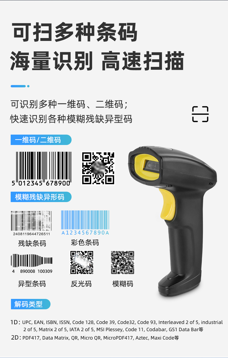MS-6610_高速度條碼二維碼掃碼槍