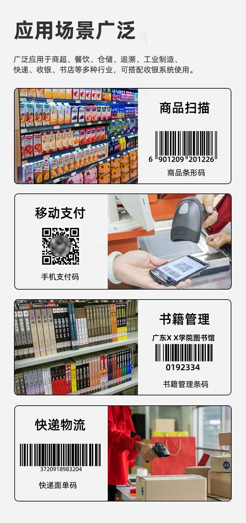 采用高速曝光算法,兼容手機(jī)碼和紙質(zhì)碼的快速讀取
