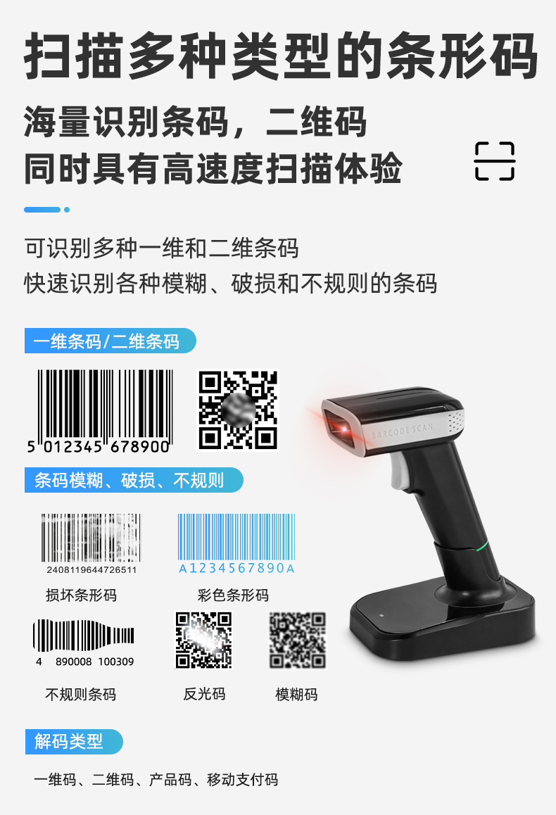 MS-6650Z是一款手持式的無(wú)線(xiàn)帶平臺(tái)掃碼槍?zhuān)庥^特性在于,不需要使用連接線(xiàn),無(wú)線(xiàn)USB接收器連接,配備桌面平臺(tái)用于收納擺放和充電;產(chǎn)品特點(diǎn)在于: 全局高速解碼技術(shù) 采用自主研發(fā)的核心技術(shù),極速響應(yīng), 支持快速開(kāi)發(fā)和定制需求 采用二維掃描技術(shù) 兼容一維碼和二維碼的讀取 支持多國(guó)鍵盤(pán) 對(duì)不同國(guó)家場(chǎng)景可配置對(duì)應(yīng)輸出鍵盤(pán) 人體工學(xué)設(shè)計(jì) 采用經(jīng)典的人體工學(xué)設(shè)計(jì),符合用戶(hù)使用習(xí)慣 手機(jī)和紙質(zhì)條碼讀取 采用高速曝光算法,兼容手機(jī)碼和紙質(zhì)碼的 快速讀取