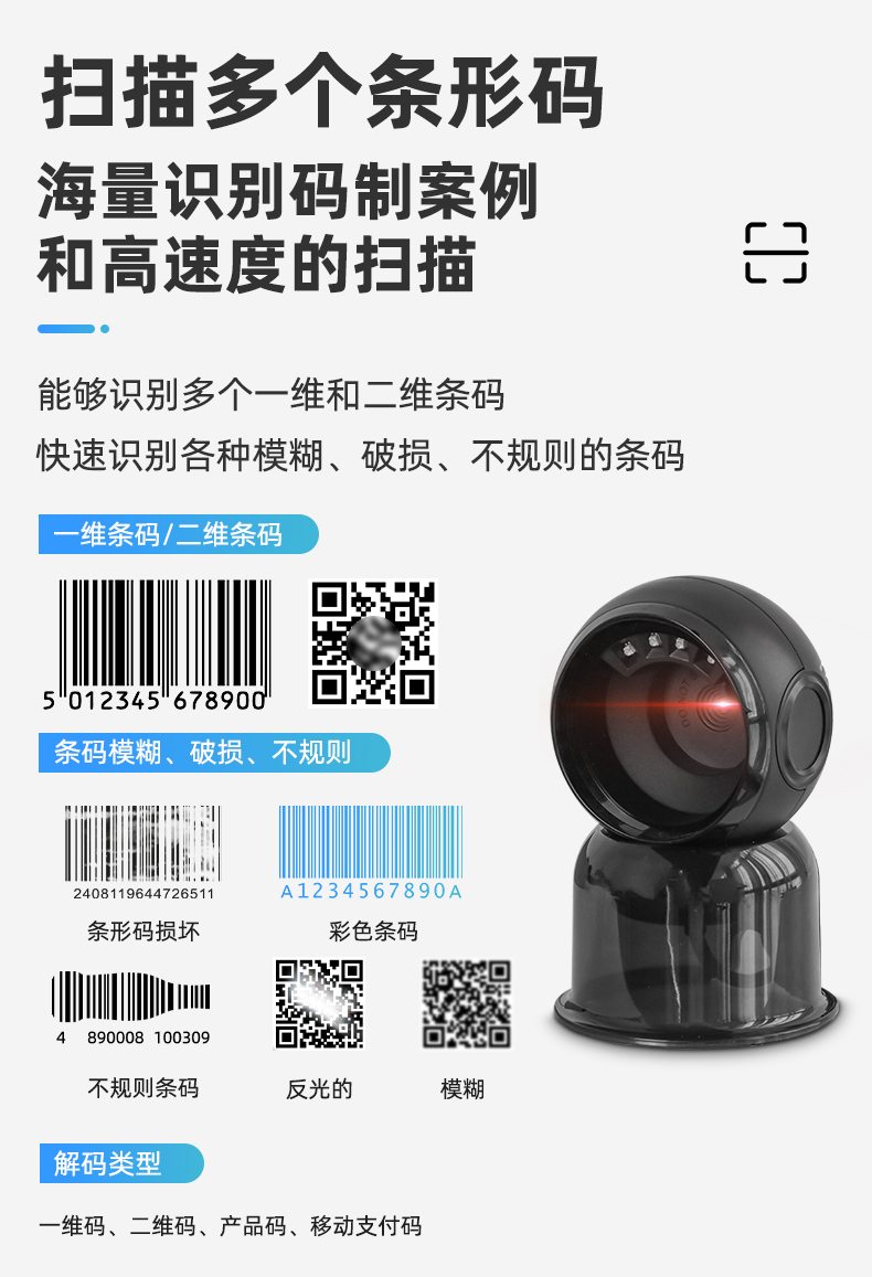 MS-7310_桌面掃碼平臺(tái)有線式 產(chǎn)品特點(diǎn): 領(lǐng)先解碼技術(shù) 采用自主研發(fā)的核心技術(shù),極速響應(yīng), 支持快速開發(fā)和定制需求 高運(yùn)動(dòng)容差 采用全局曝光鏡頭搭配快速抓取技術(shù),可實(shí) 現(xiàn)在運(yùn)動(dòng)過程中快速讀取 褶皺殘缺碼優(yōu)化 對(duì)褶皺和殘缺條碼進(jìn)行算法優(yōu)化,條碼可識(shí)讀率更高 紙質(zhì)碼/手機(jī)碼流暢切換 商品碼紙質(zhì)碼和手機(jī)支付碼間自動(dòng)切換,流暢高效 應(yīng)用場(chǎng)景: 新零售、檢票、醫(yī)療等桌面設(shè)備。尤其適合零售商品碼和其他高密、反光、殘缺、褶皺條碼的運(yùn)動(dòng)中讀取。
