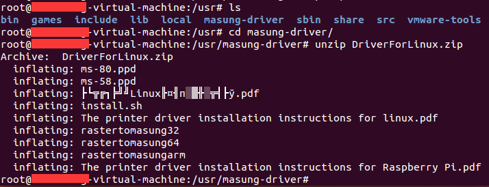 進入 masung-driver 目錄,然后使用 unzip 命令解壓驅(qū)動程序。