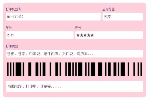 美松公司與醫(yī)療器械行業(yè)的合作案例接連不斷,58mm嵌入式打印機(jī)系列之MS-FPT201K被廣泛應(yīng)用于各類醫(yī)療檢測(cè)儀器及泌尿系統(tǒng)自助分析檢測(cè)機(jī)中;它具有機(jī)身紙倉(cāng)一體式設(shè)計(jì)且具有面板式嵌入安裝特點(diǎn),更加便捷的被安裝于各類自助終端內(nèi);支持打印統(tǒng)計(jì)圖表的功能,在醫(yī)療器械輸出信息中具有更加直觀的顯現(xiàn)。產(chǎn)品MS-LP212系列則具有打印分離不干膠功能,被廣泛應(yīng)用于醫(yī)院化驗(yàn)科室設(shè)備中,為化驗(yàn)樣本提供標(biāo)簽打印、快速分離底紙和標(biāo)簽,緩解在科室打印量的壓力。日均人流量過(guò)萬(wàn)的門診部門,病歷打印著實(shí)是一個(gè)使院方管理頭疼的問(wèn)題,美松公司針對(duì)醫(yī)院病歷打印研發(fā)出一系列創(chuàng)新型整機(jī)產(chǎn)品,專門針對(duì)不同打印規(guī)格的病歷本設(shè)計(jì)的可調(diào)節(jié)紙倉(cāng)打印機(jī)MS-STT430系列,采用碳帶熱轉(zhuǎn)印方式針對(duì)已印刷的卷皮、卷宗、檔案袋、證件內(nèi)頁(yè)、文件袋、病歷本等封面進(jìn)行二次加印的打印設(shè)備。