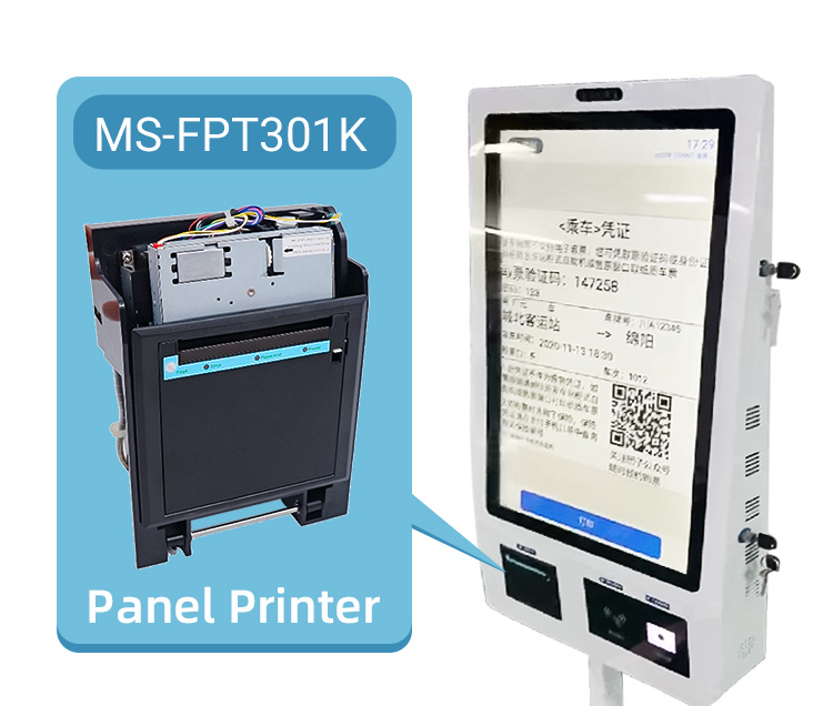 車站自助購票終端一體機(jī),集成了打印機(jī)、掃描儀、讀卡器,可以實(shí)現(xiàn)自助查詢車次信息、購票、掃碼付費(fèi)、打印車票等等一系列功能,一站式流程,全程自助操作無壓力。其中,美松品牌提供的面板式熱敏打印機(jī)MS-FPT301K,擁有超薄機(jī)身設(shè)計(jì),專用于高度集成的終端服務(wù)設(shè)備;針對車站高峰期,紙倉進(jìn)行了最大化設(shè)計(jì),80*80大紙卷,可以避免頻繁換紙;多樣的開蓋方式,即按鍵、鑰匙和電子鎖開蓋,使得打印機(jī)安裝維護(hù)方便,換紙也不需要不需要打開自助機(jī)機(jī)柜。除了這些多樣化的功能,美松打印機(jī)還憑借著自身過硬的口碑,在自助終端設(shè)備行業(yè)大力發(fā)展,不斷創(chuàng)新。