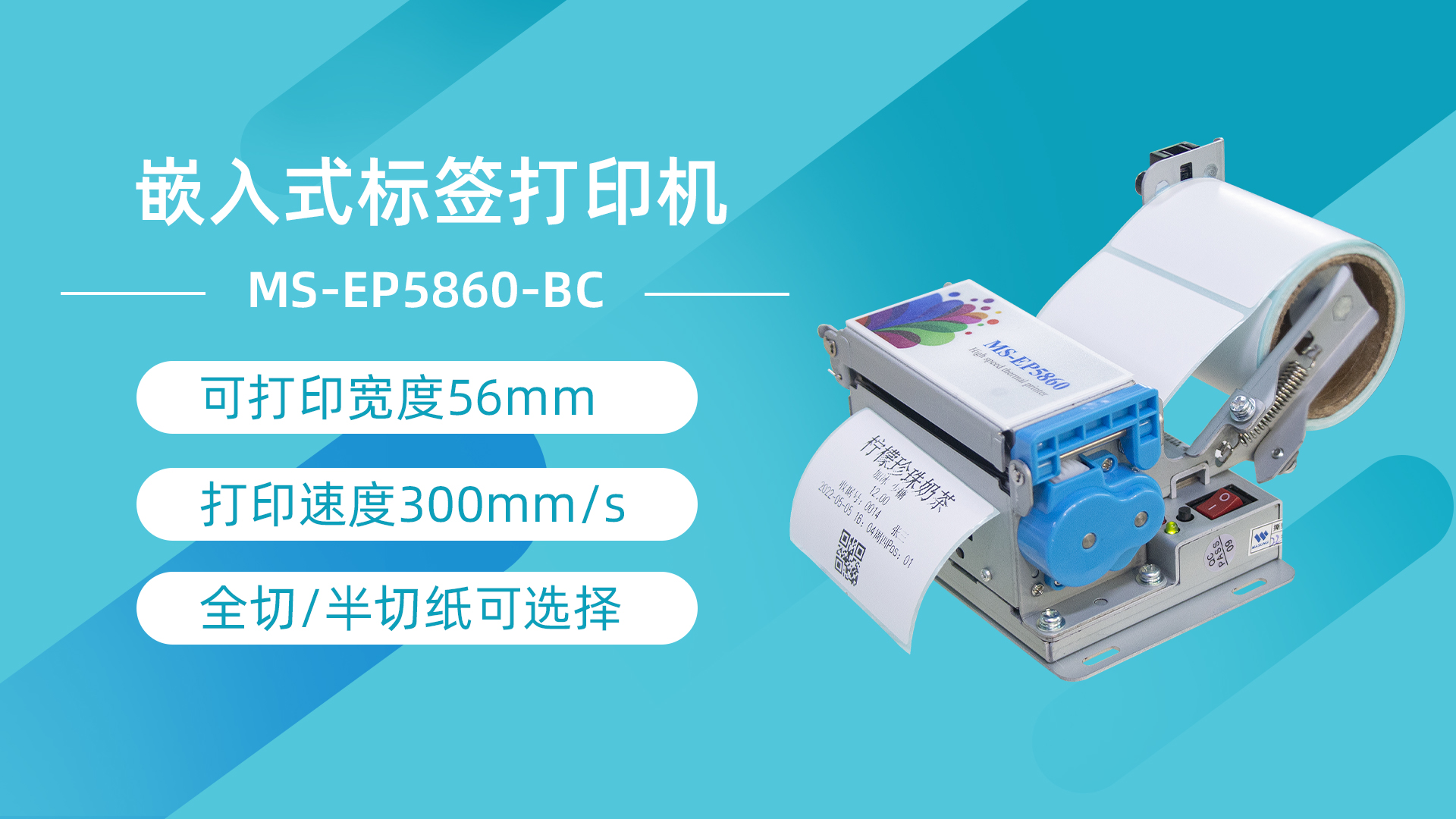 美松自助標(biāo)簽打印機(jī)MS-EP5860-BC采用的是標(biāo)準(zhǔn)通訊接口,可在不同通訊情況下使用不同的通訊接口,采用了大齒輪嵌入,打印走紙力度大,速度快,側(cè)翻蓋打印頭的設(shè)計(jì),可以讓卡紙維護(hù)更加簡(jiǎn)單便捷。打印機(jī)支持全切、半切兩種輸出模式,滿足顧客不同的使用需求,另外還具有探縫傳感器功能檢測(cè),適用于打印紙帶間隙不干膠熱敏紙。機(jī)身外觀小巧,方便嵌入在不同的終端設(shè)備中,同時(shí)支持二次開(kāi)發(fā),提供開(kāi)發(fā)資料,可裝入紙卷直徑 80mm,也可調(diào)節(jié)紙倉(cāng)支架。